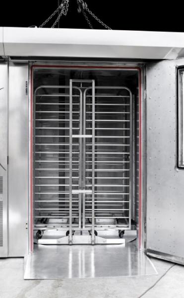 Cross-sectional view of the cooking chamber with carts.