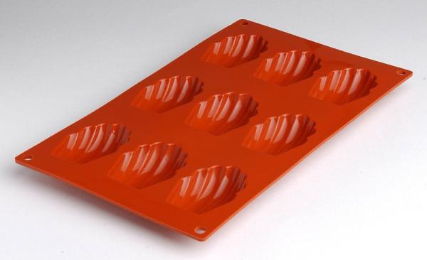 Formaflex FR021/3Silicon mould. Madeleine shaped, 9 moulds. Dimensions mm. 68x45xh.18. Blister with 3 trays