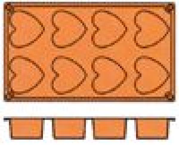 Formaflex FR025/3Silicon mould. Heart shaped, 8 moulds. Dimensions mm. 65x60xh.35. Blister with 3 trays