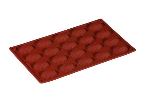Formaflex FR026/3Silicon mould. Madeleine shaped, 20 moulds. Dimensions mm. 42x30xh.11,5. Blister with 3 trays