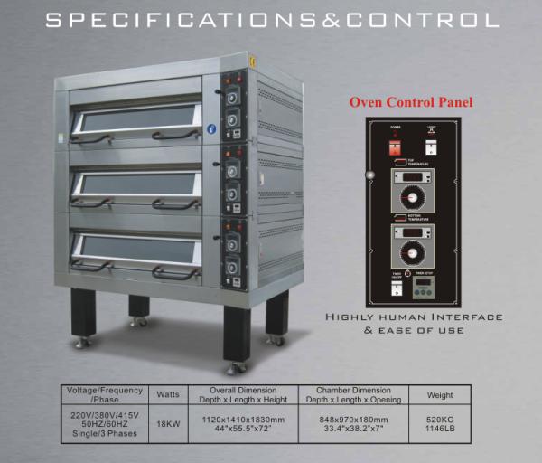 - Electric Deck Oven Model FF3009- 3 Deck 9 Tray