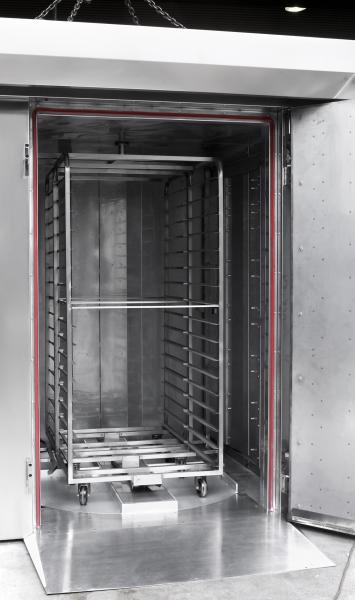 Very easy loading / discharge by means of a hook located the ceiling of the chamber cooking or platform.