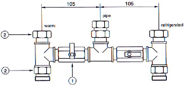 It doses and mixes warm and pipe water, warm and refrigerated water; refrigerated and pipe water; warm, refrigerated and pipe water (according to the type of installation)
